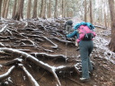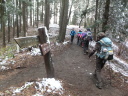 | 【期 日】 2016年3月13日(日曜日) 【メンバー】 CL:Y/S SL:H/S S/N I/K N/M S/A S/K M/I T/Y 【コースタイム】北朝霞6:57🚃🚃🚃 西国分寺7:16/7:26🚃🚃🚃 高尾7:50/8:12=🚍=🚍=小仏バス停着8:35 登山口8:50→景信山9:55~10:05→堂所山11:25→関場峠12:00~15 →三本松山12:35→ 大嵐山12:55→ 黒ドッケ(夕焼け小焼け入口)13:30→ 杉の丸13:40 → 狐塚峠14:10→ 杉沢ノ頭15:15→ 富士見台15:25→ 八王子天守閣15:50→ 八王子城 跡16:20→ 八王子城跡入口17:00/17:20(バス)→ 高尾17:30/17:36 (記録:YS) 【コメント】 久々の山で、長丁場のコースに多少の不安を抱えながらの参加であった。 バスで小仏まで行き、峠の手前の分岐から登り始めた。天気は雨の予報から、 曇りになって、今にも降られるかと思うような空であった。 午後からは薄陽も差し始めたが、気温は低く立ち止まると震えの来るほどであった。 景信山をとおり、ぬかるんだ道に悪戦苦闘して、堂所山から北高尾山稜にむかう。 そこからは道はぬかるみはなくなり、それだけで心地よく歩けた。 北高尾山稜に入ってからは、あまり人にも会わず、静かな山歩きであった。 ただ長かった!最後はただひたすら八王子城跡はまだかと思いながらの歩きであった! 何度もの登りと、下りを繰り返して、登りのトータルでは何メートルを登り、 何メートルを下ったのだろうか! 久々の足慣らしとしては、ハードであったが、気持ちの良い山歩きであった。 (S/A記) |