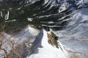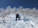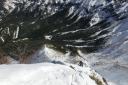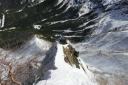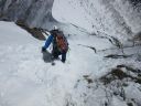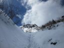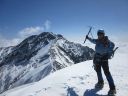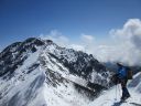 | 【 コメント】2年前、計画直前に腰を痛めて参加することができず、今回は2年越しのリベンジであった。 雪は例年より少なかったが、風もなく最高の天気に恵まれて阿弥陀北陵を登ることができた。 ピッケルを打ち込み、アイゼンの前爪を使いながら急な斜面を登るとともに眼下に広がる雄大な景色。 緊張の合間に見飽きない景色だ。 いよいよ、北陵の第一岩稜。Lが1番難しい手前のコースをトップで行く。私もギア類回収のため同じコースを登る。登り始めが1番難しく左足のステップが見つからず苦労したが、何とか前爪を岩にかけて登った。あとは、それほど難しくはなかった。3ピッチで登った。 ただ、声が届かない中で、20m30m上部のパートナーの動きを察知することの難しさ、ビレイを取りながらロープの動きに集中してその動きを見極めなくてはならないこと等、まだまだ実践不足を感じた。 山頂からは、素晴らしい眺めが広がった。帰りは中岳のコルをめざし中岳沢を下ったが、登りよりこちらのほうが雪も緩んできて滑りやすく嫌らしい斜面だった。いかにも雪崩が起きそうな地形だなと納得した。 とても楽しいバリエーションルートだった。 コメントMS |