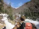 | 【期日】2016年3月25日〜26日 【メンバー】CL/M・S M・S 【コースタイム】 3月25日 自宅発 美濃戸着11:30→北沢→12:45堰堤広場→14:00赤岳鉱泉 14:30〜15:00石尊稜取り付きまで偵察 3月26日 赤岳鉱泉4:50発→5:30中山乗越→5:45行者小屋→6:13文三郎分岐(荷物デポ)→7:15北陵JP→8:20北陵取り付き→10:20阿弥陀岳山頂→10:45下山開始→11:30中岳コル→12:05文三郎分岐(荷物回収パッキング)→12:30行者小屋→南沢→14:30美濃戸山荘 |