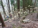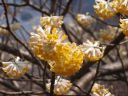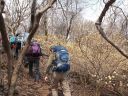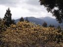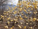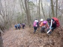 権現山へ向かう。ここにも、ここにもミツマタを見ながら急坂を下ったり登ったり、最後の急坂を登ると権現