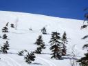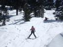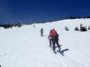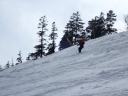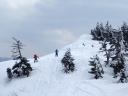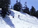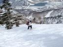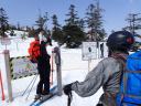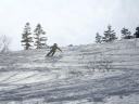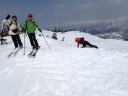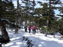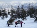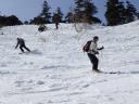 | 【コメント】 かぐらの第5高速リフト終点にはゲートが設けられ、ビーコンをつけて正しく作動していないと 入山できない。しかも、係りの人が常駐していて登山計画書をくまなくチェックし、何時にどこに下山する のか危険なコースに立ち入らないようにアドバイスされる。下山時には管理事務所まで電話連絡をしなく てはならない。遭難対策ですごく厳しくなったそうだ。 当初は、安達太良山のスキー班リベンジということで雁ヶ峰まで行くのが目的であった。しかし、やはり 今年は記録的な雪の少なさで、上から滑って行っても途中から雪が無いとのことでコース変更を余儀なく された。自然だから仕方ない。 1日目は、足慣らしに神楽峰まで登り、苗場山や上越の山々の風景を楽しみながら田代方面への山ス キーになった。天気よく、暖かいのはありがたかったが、雪は重く雪面もボコボコしていてターン一つ思う ようにできない。かなり足にくる。急斜面では足が耐え切れず、腰が引けてしまい転倒。でも、リフト券が もったいないので、山から下りたあともぎりぎりまでゲレンデで滑った。何てゲレンデのオンピステの滑り やすいこと。しかもリフトってありがたいなあとしみじみ思う。 2日目は、とりあえず出発と霧の塔手前までシール歩行。急な登り斜面を前にリーダーの「ここまでにし よう」との声。ホッとする。苦労して登って1番下まで滑れるならまだ楽しみもあるが、行ってまた引き返し の登り返しがあると思うと。・・・スキーで何時間も歩くだけは飽きる。やはり、下手でも滑って下りたいな と思う。 きれいな景色のポカポカ陽気の中でゆっくり昼食をとる。そこは昨年の会山行の苗場からの小松原コース の稜線の脇であった。冬はこんなに雪深くなるのだなあと改めて感心した。 美しい樹林帯を戻ってやっと滑降モードに変更。今度は重い雪との格闘。木にぶつからないように、スピ ードをコントロールしながら滑るが何回も転倒する。ボコボコの雪に足を取られ、起き上がりやすく転ぶの も技のひとつか?雪が柔らかいから転んでも痛くはないが急斜面で転ぶと起きるのが一苦労だ。 1度転ぶと体力をロスするのでなるべく転びたくない。悪戦苦闘しながらも何とか無事にかぐらゲレンデま で戻った。 来年のためにゲレンデで練習をして今回の山スキーは終了した。 来年は雪がいっぱい降りますように! コメントM/S |
