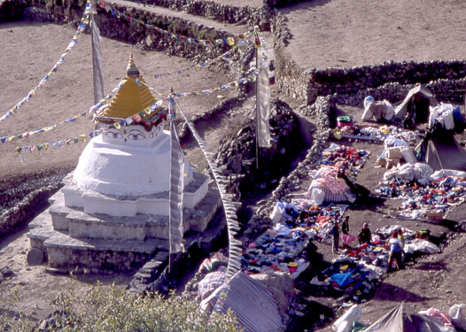 エヴェレスト街道を行く、 ナムチェバザールのストゥーバとバザール広場