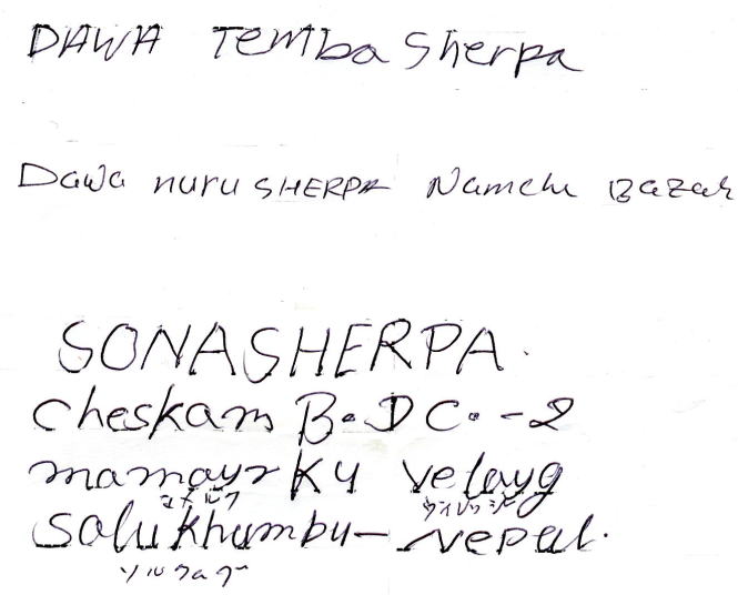 お世話になったガイド:ダワ・テンバ・シェルパ、ダワ・ヌル・シェルパ、ソーナ・シェルパ
