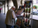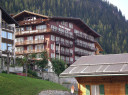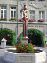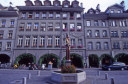| 【第二日:08月23日(晴れ)】 ベルン→ツーン→シュピーツ→インターラーケン・オスト→ラウター・ブルンネン→グルッチュ・アルプ→ミューレン(1640m)→シルトホルンの展望台→ミューレン 朝、もう一度オリンピックについて聞いてみると、新聞を指差して・・・・、果たして野口みずきのゴールする写真が一面に載っていた。朝食をすませて、ベルン市内へ、U字形に蛇行するアーレ川に囲まれた旧市街、槇有恒著【わたしの山旅】にこんな表現があった、「第二次世界大戦後、私は三十余年ぶりに、この町を訪ねたが町の姿は昔と変わっていない。永世中立国のため、戦禍を受けることが無いにしても、余りにも変わらぬ町の姿を不審に思った。案内の山の友ブラヴァント君は当時ベルン州のプレジデントの職にあったが、この町の姿は法律によって維持保護しているといった。家屋の外観は厳格に旧態を保存するようにされているのであって、今日ヨーロッパの戦災で数少なくなった中世界都市の景観を大切に保存しているのである、つまり歴史と伝統とを近代化より尊重しているのであり、市民もまたそれを誇りとしているということである。私は京都や奈良の問題を思い出さずにはおれなかった。」 野菜や花の市の屋台が並ぶ広場、その先にスイス連邦議会議事堂がドーム型の屋根を戴いて建っている。かつての牢獄塔、からくり時計のある時計塔を通って東に向かうメイン・ストリート、通りには様々な石像が載った噴水が間隔を置いて並ぶ、また両側には石造りのアーケードが連なり、足元には蓋のように地下室へのドアが並ぶ、路面は石畳の興味深い街並みだ。ベルン最古と言う石のアーチ橋を渡って、熊公園(熊はベルンの象徴)、そしてバラ公園へ、アーレ川、ベルンの街並みが一望できる。 ベルンから再び国鉄SBBでミューレンに向かう、市街を離れると両側にはトウモロコシ畑が目立つ農村風景が続く、やがて湖の岸寄りを走る、ツーン湖だ、中央の通路を挟んで左側の座席に一人旅風の老婦人が座っていた、その窓から眺めさせてもらおうと近づくと気さくに話しかけられ沿線の風景の説明をしてくれた、ツーン湖に沿って走ると湖の向こうの谷間に真っ白な山が見えてきて、あれがアイガー、メンヒだと教えてくれ、カメラの用意は良いか?間もなく良い眺めだ・・・・・としらせてくれた、ご当人はアイガーからユングフラウ・ヨッホまで四週間の旅行でドイツから来られたとか・・・・・、ご婦人とはインターラーケン・オストで別れ、名前を覗ったら“エリカ”さんと仰った、シュツットガルトからだそうだ、おいくつくらいだろうか七十歳は越えている?文化の違いを感じる。 我々は登山電車BOBに乗り換えてラウターブルンネンへ、ここからケーブルカーは一直線に700mの高度を十分足らずでかせいでくれる、タンネ(ドイツ語で樅の木だそうです)の森を、天気は良いし、初めて身近に見るアルプスの峰々が次々と顔を出し久々にワクワク心ときめく風景で思わず歓声を・・・・・。あれが彼の有名なアイガー(3970m)だ、メンヒ(4099m)だ、ユングフラウ(4158m)だ!。 グルッチュアルプからのアイガー、メンヒ、ユングフラウの三山の眺めの素晴らしさと言ったら・・・・、再び登山電車のBLMでミューレンに向かう。線路は等高線に沿うように走る、それに沿うようにハイキング・トレールも整備されておりハイカーが三山の眺めを楽しみながら歩いている。進むにつれ角度を変えての三山の眺めが楽しめる、ミューレンの駅に着いて直ぐ前が宿泊先のその名も“ホテル・アイガー”、天候が良いことから自由行動のプランを変えてシルトホルンに向かうことに、荷物を預けホテル前のメインストリートを抜けて南端のロープウエー乗り場へ、途中直角に乗り換えてシルトホルン(2970m)の頂上展望台へ、ここは映画「女王陛下の007」の大スペクタクルの舞台となったレストラン、ピッツ・グロリアがあり、一時間に一回転する回転レストランでお茶を飲みながらも山々の風景を堪能できる、天候は良くても矢張り高所、結構寒い、しかしそれらも忘れるほどの素晴らしい展望、アイガー、メンヒ、ユングフラウはもちろん・・・・・、刻々変わる風景にカメラのシャッターが止まらない!? ロープウエーの駅からホテルに戻る道は両側にお土産屋を兼ねたロッジが並び窓は花に飾られ、国旗、ミューレンの旗が揚げられ色彩豊か、その中を通る先にアイガーの北壁が見える。