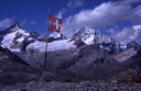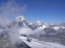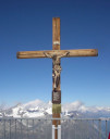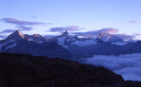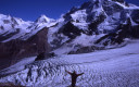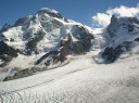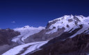 【第七日:08月28日】 ツェルマット→フーリ、トロッヶナーシュテーク、クラインマッターホルン(3883m)→氷河の畔のガンデックヒュッテ(3030m)へ この日も申し分の無い天候。とおりの両側に花で飾られた家が並ぶツエルマットのメインストリートを通り抜けた先からロープウエーを乗り継いでクラインマッターホルン(3883m)へ、今回のトレッキング中の最高到達点、途中のガンデックからは一挙に1000mの高度さを稼いでウンターテオデュール氷河を渡り岩峰の突端へ、よくぞ建設したな!驚嘆したくなる様で岩山全体がアンカーの役目を果たしているような山頂駅、此処からさらにエレベーターと鉄の階段を経て山頂へ、さすがに寒い!大きな十字架が建っておりマッターホルンは目と鼻の先と言う感じ、イタリア側も望める360度の展望、下の駅に戻りトンネルをくぐり抜けると白銀の世界、スキーヤー、ボーダーが楽しんでおり、ブライトホルン(4164m)への登山起点でもある、トンネルを少し出たところに氷河の中にもぐるように掘られたトンネル内が氷河ミュージアムとして氷の彫刻が展示され無料公開されていた。再び大型ロープウエーでトロッケナーシュテーク(2939m)まで戻り、歩いて今夜泊まるヒュッテのあるガンデックまで登り返す、オーバーテオデュール、ウンターテオデュールの両氷河を分ける岩盤上のの突端に建っているガンデックヒュッテ(3030m)三階建て、地下一階のヒュッテ、氷河に面した新刊に皆が、そしてまたまたKさんと自分は三階の部屋へ、二段ベッドが両側にある四人部屋、先客が居る様子、ベッドの先に彼の鉄人“ラインホルト・メスナー”のサインが読み取れる、彼も何時の日かこの部屋に泊まったのかな?この部屋からは窓越にミシャベル山群の山並みが見える。表にでて陽だまりのベンチで刻々変わりゆく山々の風景を楽しむ、マッターホルンの東壁を真正面に見ることができる、今回ひそかにもう一つの楽しみにしていた“R・シュトラウス”の「アルプス交響曲」を持ってきたiMACで本物のマッターホルン、アルプスを眺め、コーヒーを飲みながら聴く!至福の時間だ。 相部屋の二人は高齢のご夫婦?上段と下段で休養されている様子だが、上と下から腕を伸ばし手をつないで寛いでいらっしゃる様子に、こんな時も互いの絆を大切に過ごすスタイルを見て、文化の違いを強く感じた!ことも記憶に新しい。 このヒュッテの夕食も素晴らしいものだった。 |