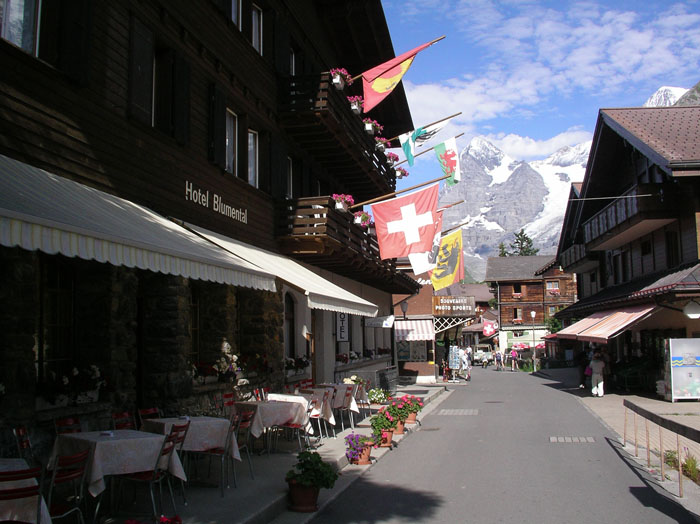 アイガーが見えるミューレンのメインストリート
