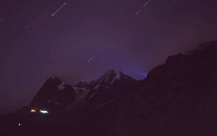 ホテルのテラスからアイガーの夜景を望む