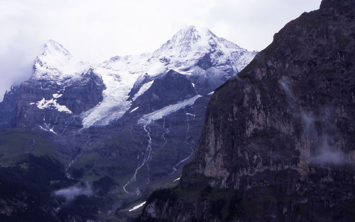 雪降るアイガーとメンヒ