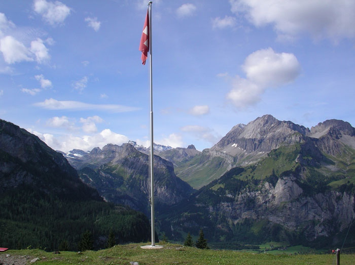 矢張りアルプスの青空にはスイス国旗は良く似合う
