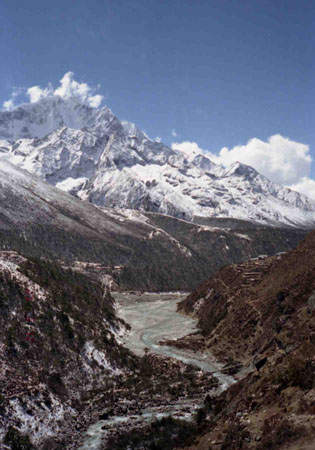 エベレスト街道は谷間に沿ってg
