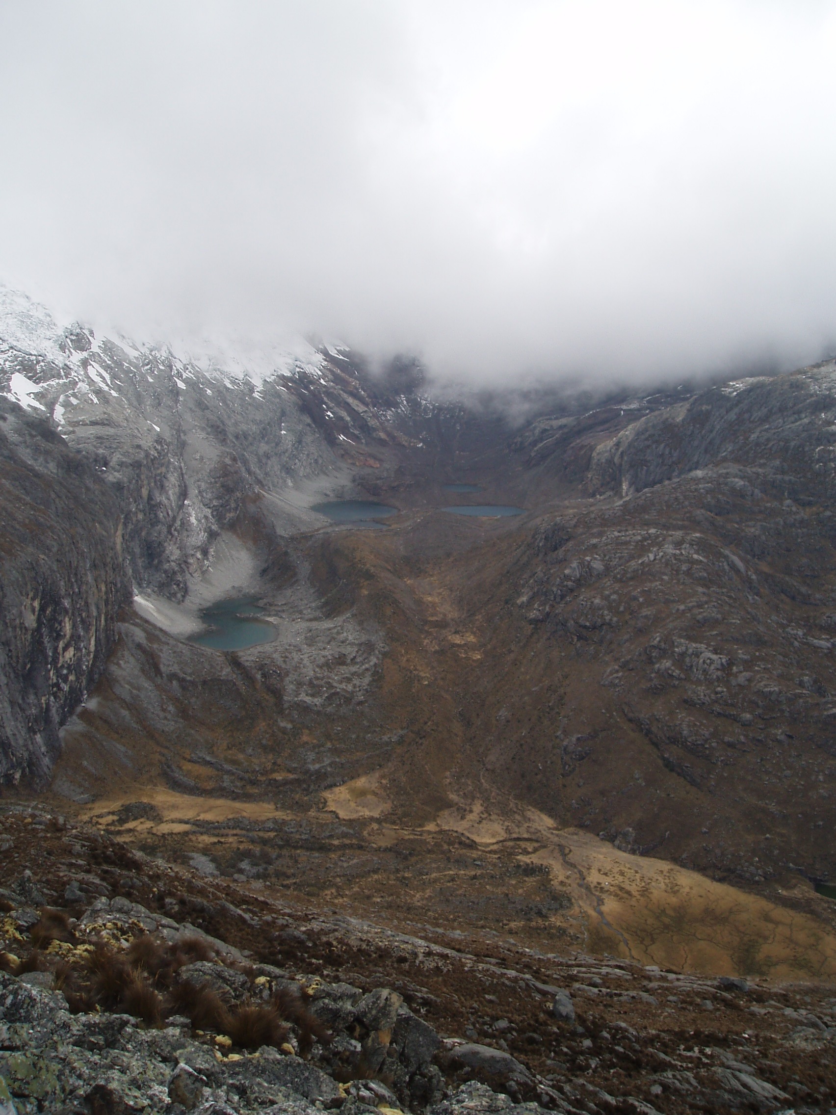 09月10日08山頂は雲に覆われているが氷河湖群が眼下に.