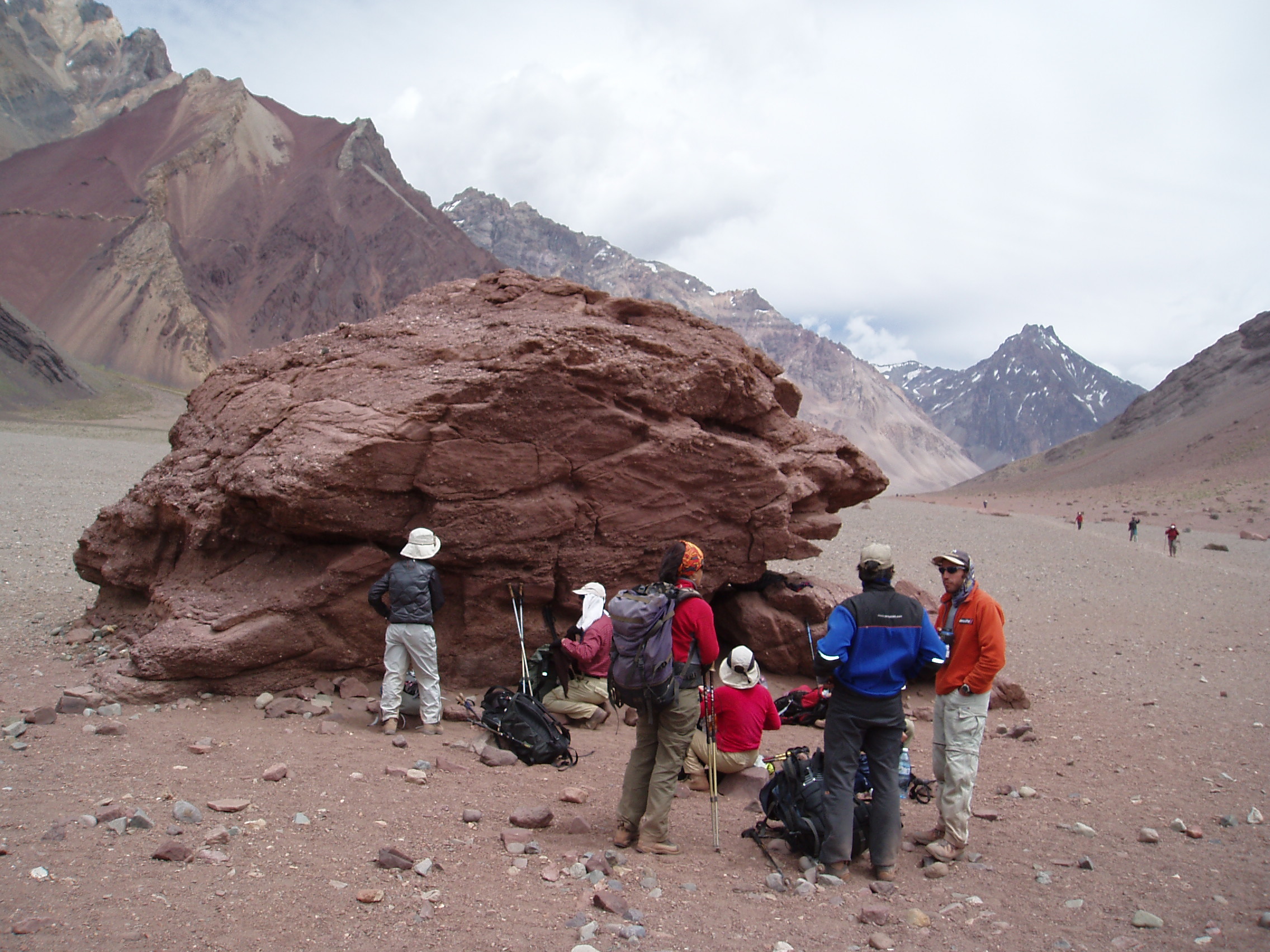 01月10日05 河原の大岩で休憩、雲が広がる