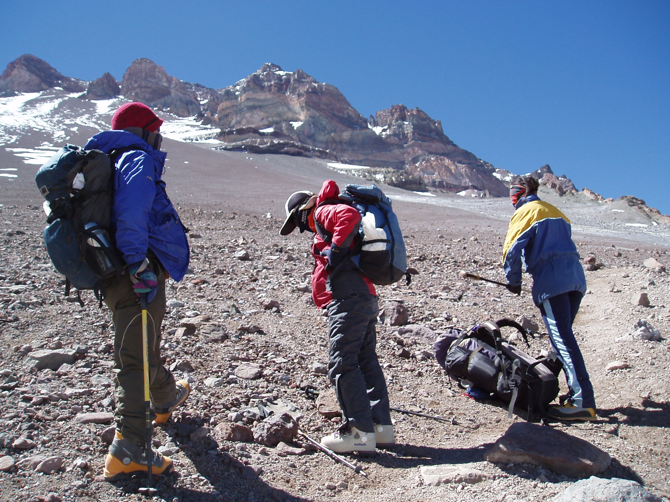 01月18日02 見上げるとアコンカグアのグラントラバースが白い線として