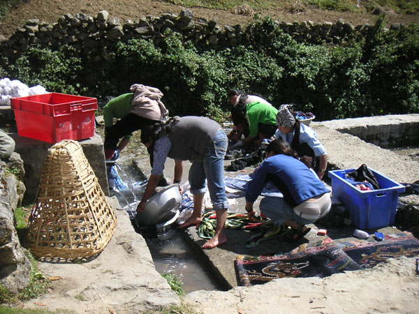道路脇の水場で洗濯におおわらわ