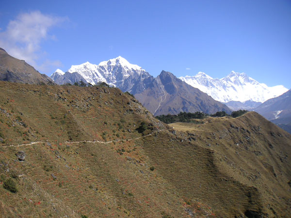 山腹を縫うようにエベレストへと道が続く