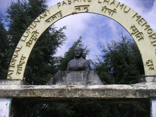 ネパール女性初のエベレスト登頂者の像がにこやかに出迎え