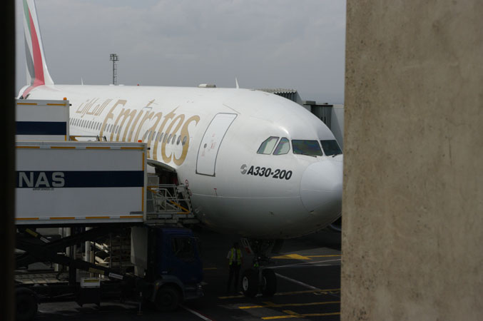 搭乗を待つエミレーツ航空・724便エアバス