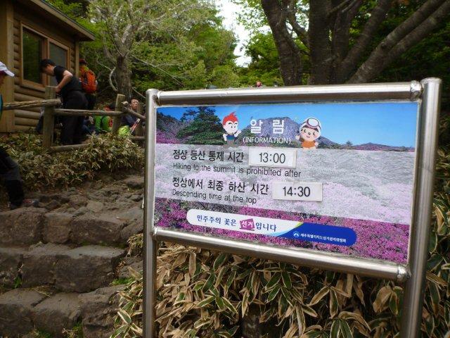 ハンラ山には登山統制時間制限が。今日は13:00迄と書いてあります