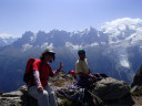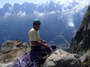 | 7/27(金)プレバンの岩登り!朝8時ホテルに集合。久しぶり!おはようモンブラン! ロープウエイに乗り、プレバンの、ラ・ソモノの岩場に行く。7ピッチの岩場。岩場の取りつきで、フランスのガイドと一緒になる。 Iガイドが私達に先を譲ってくれるようにソノパーテイに話す。懸垂下降ありの楽しい岩場だった。岩場のテラスで食事。 そこで分かったこと、このガイさん有名な人でした。本当は私達が譲れと言われても仕方がないのに、力のある人はおおらかです!! 私にも足の置き方などを指導してくれました。 午後、ホテルに帰り、広場をうろうろし、有名なジエラード店のゼラードをほおばり、買い物にブラブラ町を行く。 夜、待ち合わせて食事。ここも現地の人のみ、知る人ぞ知るレストランでした。 帰りにテーブルマットとして使用されていた、山の地図を、ガイドにお願いして頂いてもらいました。 ツエルマットに移動 |
