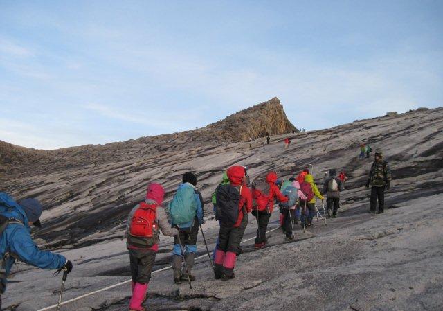 一枚岩の岩盤をロウズピークを目指して登ります