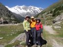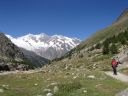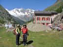 | ☆7月31日(水) ハイキング 今日は石坂プロデュースによるトレーニング初日だ。 六時起床。私は体調がすぐれず、食欲がない。 ホテルで七時に朝食を食べ、ホテル発八時十五分。 今日から二日間は山小屋だ。サースフェーの街からバスでザースグルントの登山口に行き、そこから1000m〜2000mの山にハイキングだ。登山口から、多くの花々がこれでもかこれでもかという風に咲いており、出迎えてくれる。高度があがるにつれ、周りの牛の数も少なくなり、カランカランというカウベルの音も遠のいてかすかに聞こえるほどになった所で、景色が変わる。素晴らしい白い山の世界4000m級の山並みが、広がり、山が氷河が身近に迫る。周り一面、四千メートル級の山々の景観の中を楽しく歩く。 贅沢な道だ。休憩や、おやつを食べ、ゆったり歩くなかで着実に高度順応していく。やがて今夜の宿、かわいい「アルマゲロ小屋」が見えてきた。この辺りから左足が筋つり気味に。(まずいな〜。こんなことってあるのか寝不足か?体調悪いのかな?)と自問問答を、悶々とする。やがて小屋に到着。二時半。 小屋でビールと昼食をとり、たっぷりの水分を取る。小屋での注文はドイツ語だった。一つは「ワン」ではなく「アイン?」午後は小屋の裏手の岩で、岩登りのトレーニング練習。マルチピッチ一か所。合計三ピッチ程練習した。筋つりはその後起こらなかったが、体調が良くない。夕食後、早々に休むことにした。 小屋の寝具は花柄で、実にかわいい。次の日は本番を想定しての練習なので、朝早い。そしてながい。布団に入ると、すぐに寝てしまった。 |