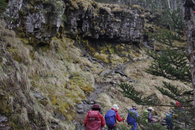 岩の間から水が浸みて苔生しています 水場になっているようでした