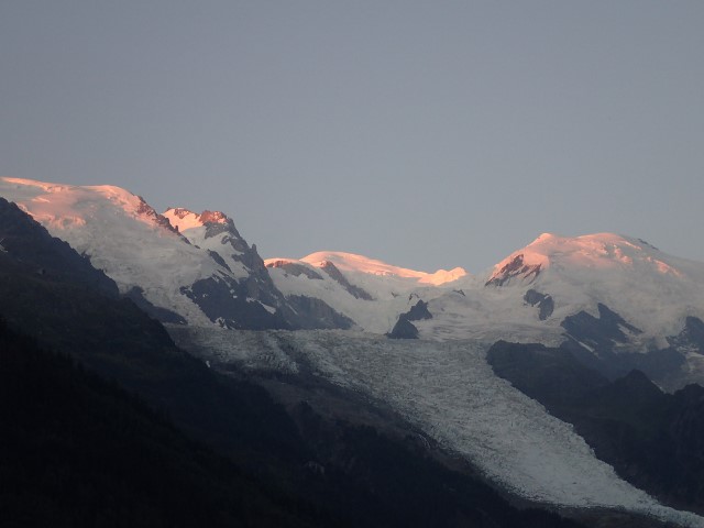 ホテル・プリオレより夜明けのモンブランとボッソン氷河