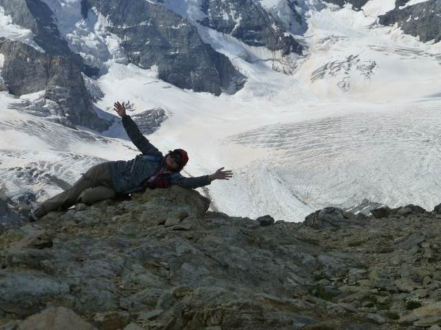 後ろは氷河です