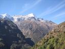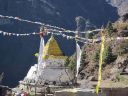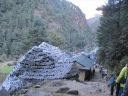 | 谷沿いの道をジョサレ(2,840m)へたどり、世界遺産のサガルマータ(エベレスト)国立公園へ。 モンジョの出口にチェック・ポイントがありトレッキングのチェックを受けた。 ドゥード・コシに架る吊り橋を渡り、高度差600mの坂をゆっくり登って、シェルパの里ナムチェ・バザールに 到着した。南西以外を山に囲まれた、すり鉢状の地形の山腹にロッジ、レストラン、お土産物屋、銀行など 100軒ほどの家々が密集していた。 昼食後、ゆっくりと町の中を散策し、楽しかった。 |