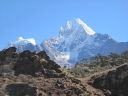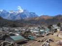 | ナムチェ・バザールから飛行場のあるシャンボチェを通り、ホテル・エベレストビューへ。 ここで、エベレスト、ローチェ、アマ・ダブラムを望みながらのコーヒータイムは、とても美味であった。 ホテル・エベレストビューを後に、シェルパの里、クムジュンへ。遠くから見るクムジュンは、 家並みが統一され、暖かい感じがした。 クムジュンには、ヒマラヤの謎の生物イエテ(雪男)の頭皮が、祀られていた。 ゴンパ(チベット仏教のお寺)でお詣りをすませ、キャンズマに向かった。 ヒマラヤという秘境の地でロマンと神秘を味わった一日であった。 |
