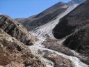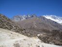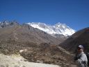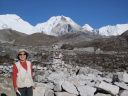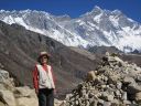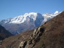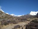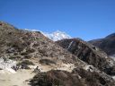 | 視界が開けると、「母の首飾り」アマダブラムそして、ローツェを仰ぎ見ながらの絶景トレッキングであった。 街道には、やはり石塔が。ディンボチェとペリチェの分岐に設置された、マニ石に敬意を表しながら ゆっくり歩くと、広々とした河原のディンボチェのロッジに到着した。ローツェが美しい・・・。 昼食後、チュクンへ向けて出発。ヒマラヤひだが美しく、うっとりした。 |