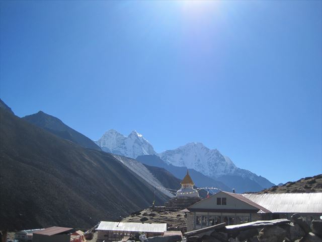 チュルテンの見えるディンボチェのロッジに戻りました