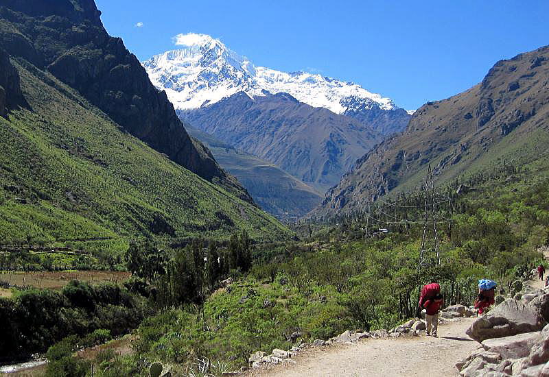 マチュピチュまでは、約40Kmの道のりである。谷沿いの道をコース中、唯一の村ワイリャバンバ(2,950m)へ向かった。テント場までのトレイルは、生活道もあり売店等を眺めながら歩いた。