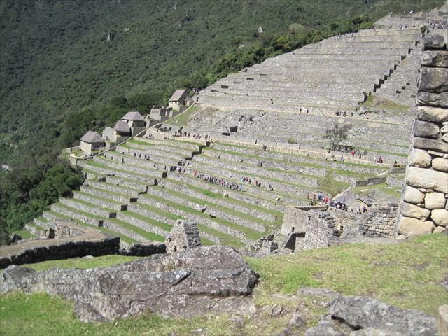 段々畑の左側には住居跡