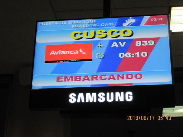 翌朝、リマ発、クスコ行きに乗ります