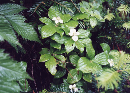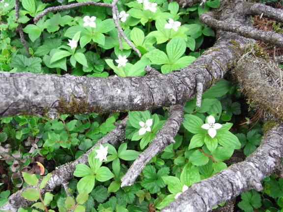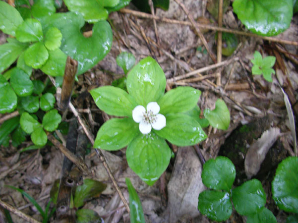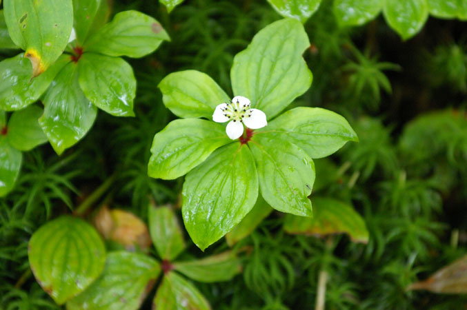| ●ミズキ科・ゴゼンタチバナ属・ゴゼンタチバナ(御前橘)▲;Cornus canadense |