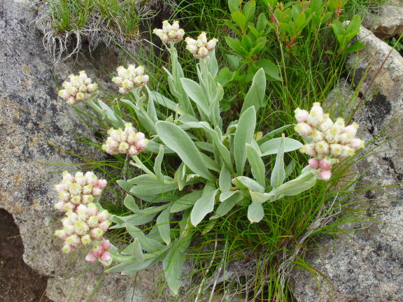 | ●キク科・ヤマハハコ属・タカネヤハズハハコ(高嶺矢筈母子)▲;Anaphalis lactea f.alpicola |