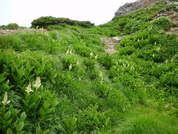 | ユリ科・シュロソウ属・タカネシュロソウ(高嶺棕櫚草)▲;Veratrum maackii var. japonicum f. atropureum |