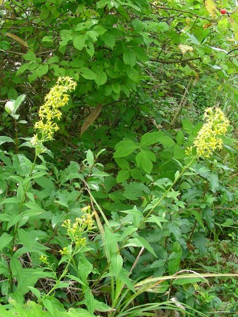 | キク科・アキノキリンソウ属・コガネギク(黄金菊)▲;Solidago virga-aurea ssp. leiocarpa f. japonalpestris |