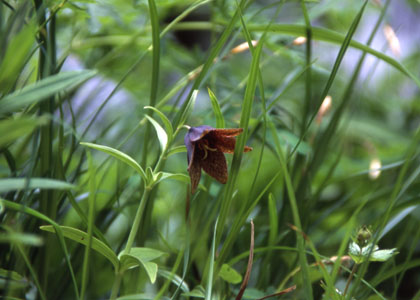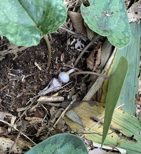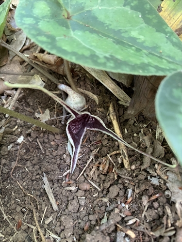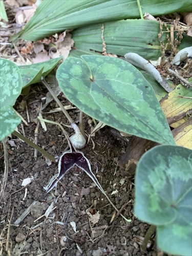| ウマノスズクサ科・カンアオイ属・オナガカンアオイ(尾長寒葵);Asarum minamitanianum |