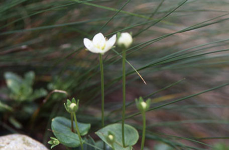 | ユキノシタ科・ウメバチソウ属・パルナシア・パルトリス:ウメバチソウ(梅鉢草)▲;Parnassia palustris |