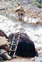 | 7月18日(金) 快晴 ●黒四ダム→十字峡 ○黒四ダム8:50→(4.1k)内蔵ノ助谷出合9:45・10:05→初めの雪渓11:15・11:25→ →4つ目の雪渓12:30(昼食)・13:30→ 白竜峡14:50・15:00→十字峡15:40 テント泊 ○予定の阿曽原まで行けず、十字峡泊りとなる。 下の廊下は途中雪渓が5か所ほどあり苦労する。 特に初めの雪渓は途中穴があいて 渡ることが出来ず下を回った。 白竜峡の雪渓は建設会社の人がトンネルを掘っているので通過できず、縄梯子を登ることになる。 荷が一人平均だいたい35〜6sであったが、まずまずの重さだ。 |