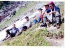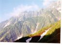 | 7月19日 (土) 晴れ、夕立 ●十字峡→池の平 ○飯4:30→出発5:50→S字峡吊橋7:00・7:20→阿曽原との分岐点8:15・8:25→小水場9:15(昼食)・10:30→ →小休止(雪渓)11:30・11:40→温泉12:00→枝沢小休止13:30→小休止14:40・14:50→ →仙人稜線15:40・16:20→池の平16:50 テント泊 ○阿曽原峠より、しばらく行った地点で夏道より分かれて雪渓上にルートをとる、ガスがかかり 上部で少しとまどったが問題なし、 M/N左足吊る。 |